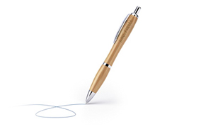 Kugelschreiber mit Bambus-Kunststoffspitze Schaft mit Metallclip graviert Clipseite Gravur: 40 x 6 mm austauschbare Tintenmine Farbe: blau, unauslöschlich einzeln verpackt in einer Schutzhülle ab 100 Stück erhältlich Holz ist ein Naturprodukt, es können Unterschiede in Farbe und Gravur auftreten